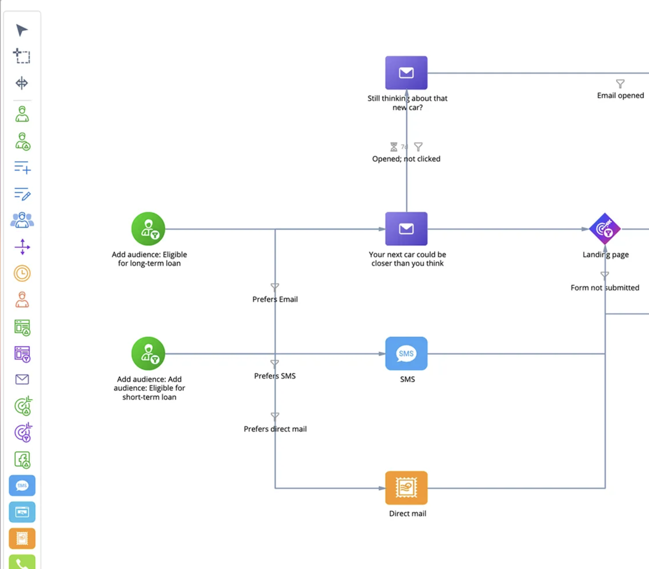 • Inteligentne logiki doboru kanałów komunikacji – platforma umożliwia zaprojektowanie procesu decyzyjnego dotyczącego wyboru kanału komunikacji, przypisania odpowiednich ról oraz zarządzania statusami danych teleadresowych. Pozwala to na pełną personalizację kontaktu w masowej skali, bez ryzyka chaosu operacyjnego.